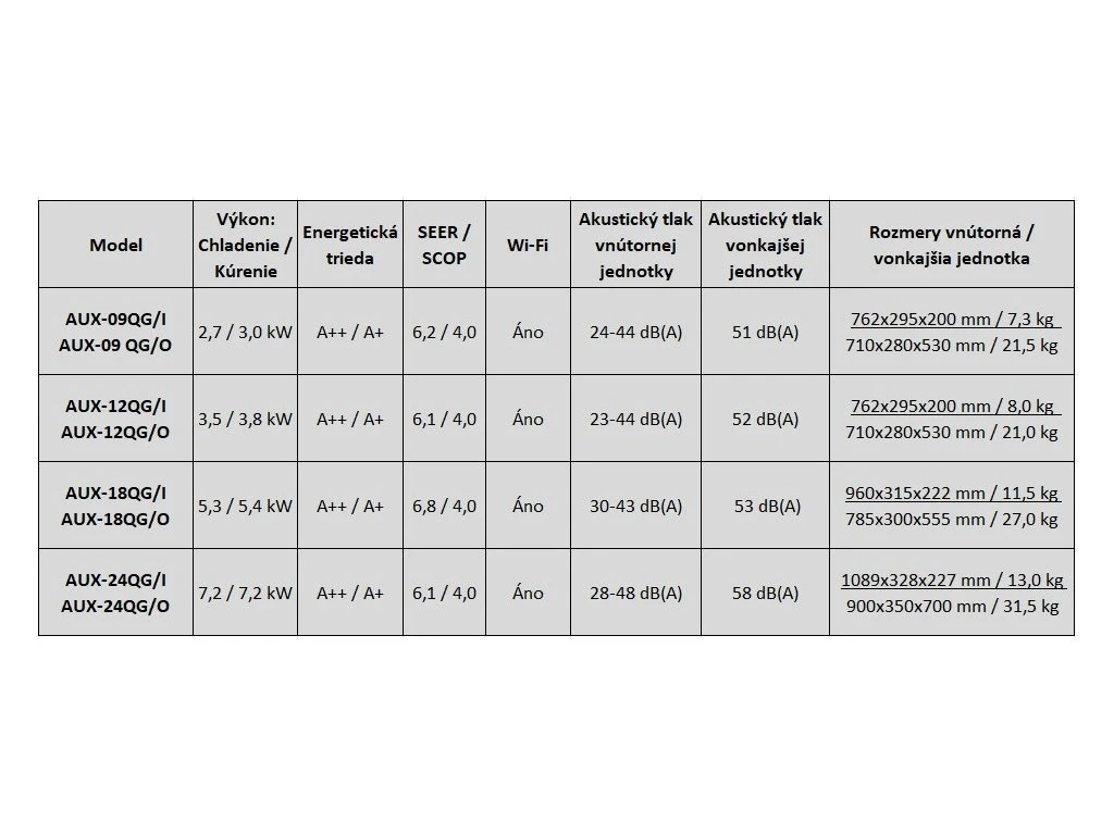 Základný model v rade AUX domácich zariadení, Q-Smart Eco, prekvapuje množstvom funkcií – ponúka okrem iného funkciu samočistenia, turbo režim, časovač, inteligentnú funkciu merania teploty „I FEEL“, UV sterilizáciu a ovládanie cez WiFi.