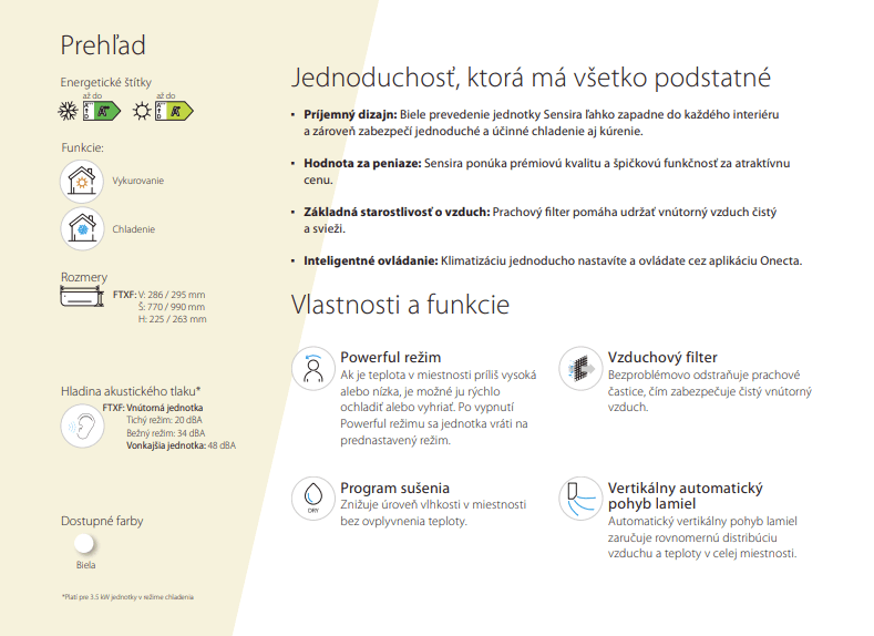 Klimatizácia Daikin Sensira je model charakteristický nízkou spotrebou energie, poskytujúci príjemný komfort so základnými funkciami.
