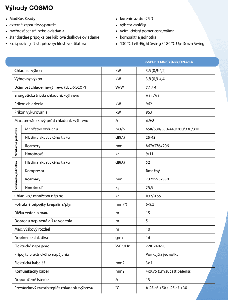 Klimatizácia COSMO spája moderný dizajn, tichú prevádzku a jednoduché ovládanie s LED panelom. Vďaka optimalizovanému vykurovaniu poskytuje celoročný komfort bez rušivého hluku.