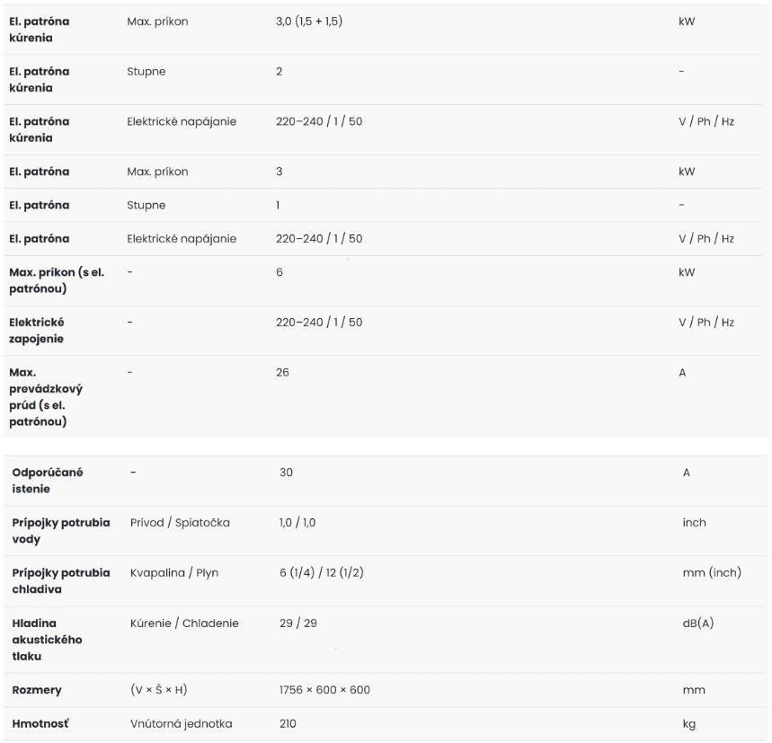 El. patróna s 2 × 3 kW prípadne 6 kW